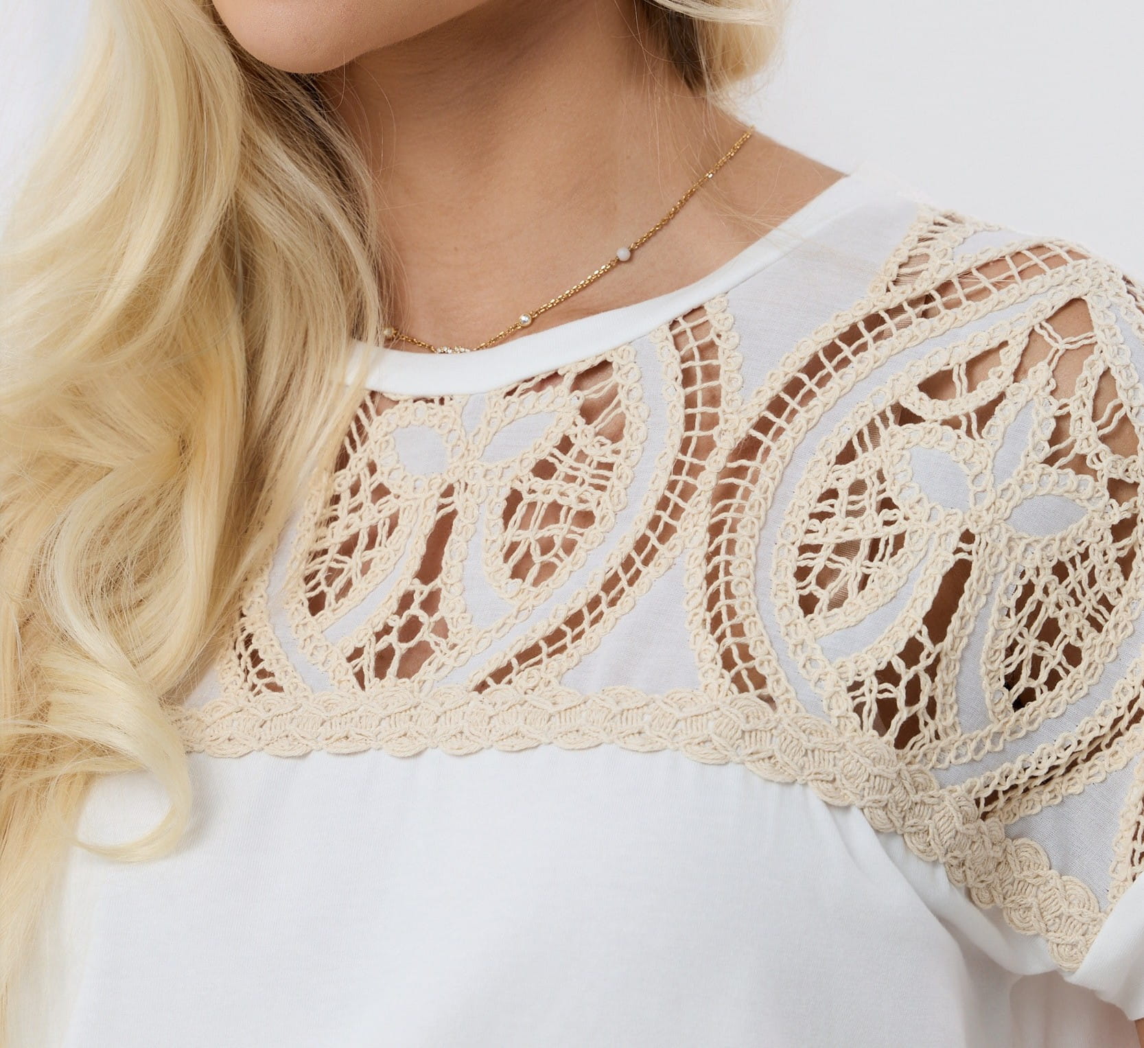 Biała bluzka Bianca z ażurową koronkową wstawką