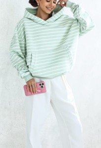 Bluza Stripes z kapturem pistacjowa
