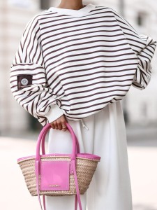 Bluza Uni ecru z czekoladowymi paskami