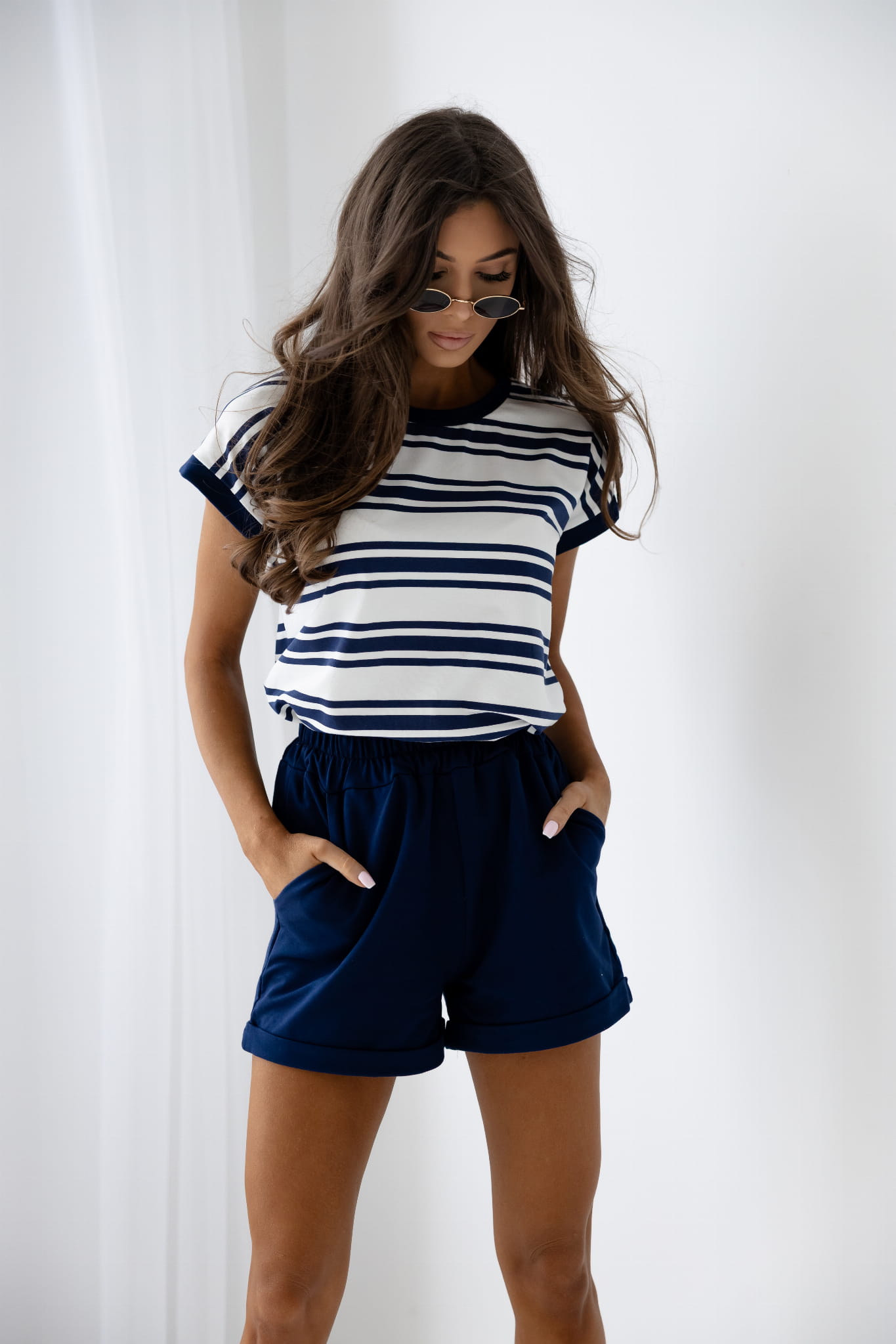 Komplet Bawełniany Granatowy w paski