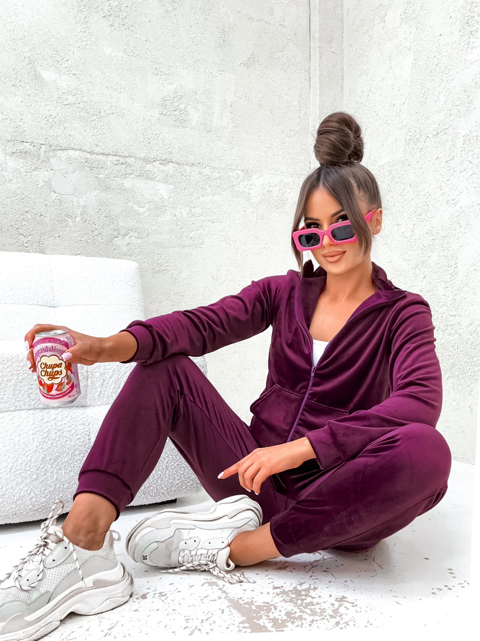 Komplet Dresowy Welurowy Stella śliwkowy