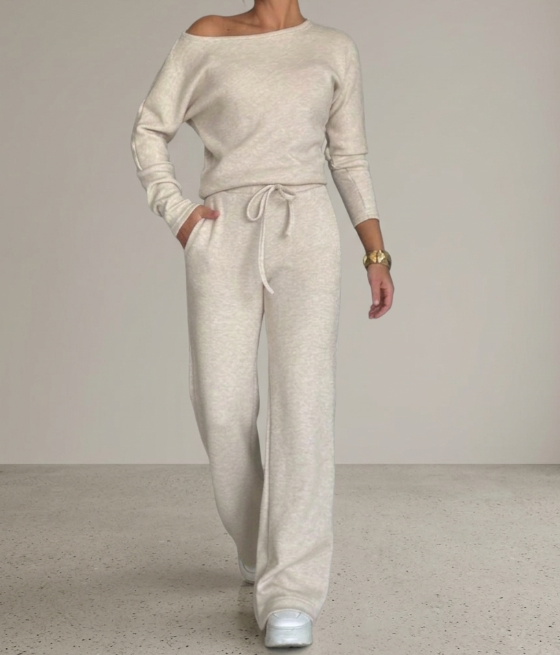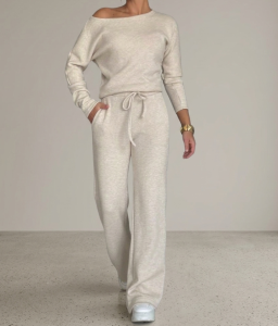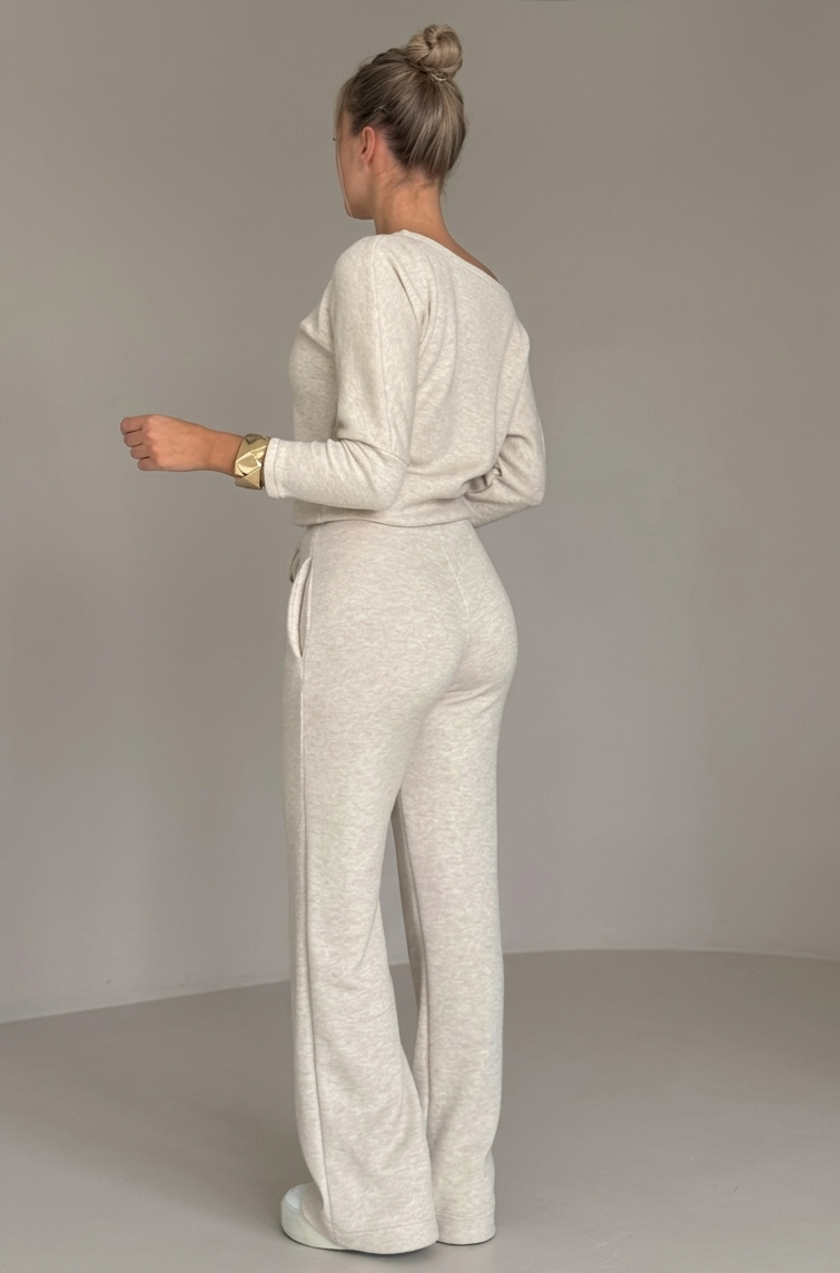 Komplet dzianinowy Wendy bluzka spodnie beżowy