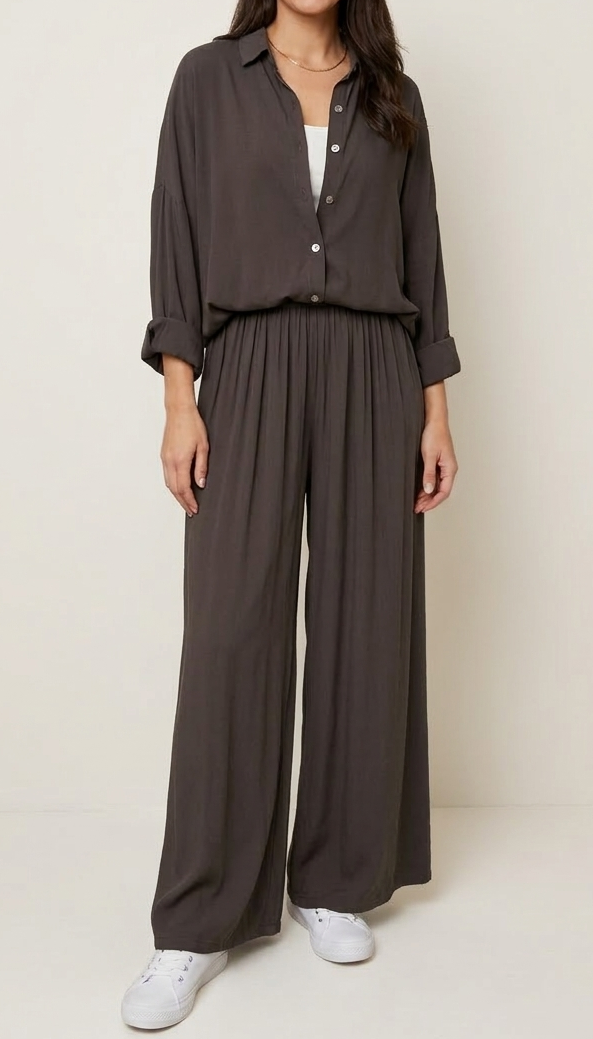 Komplet wiskozowy Lacy koszula+spodnie czekolodowy