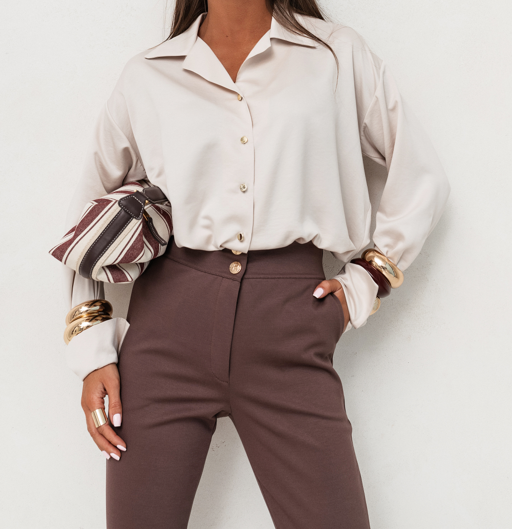 Satynowa koszula Vivi to połączenie elegancji i wygody. Wykonana z wysokiej jakości tkaniny, zapewnia komfort noszenia i idealne dopasowanie. Delikatny, satynowy połysk nadaje jej wyjątkowego charakteru, dzięki czemu świetnie sprawdzi się zarówno w codziennych stylizacjach, jak i na bardziej eleganckie okazje.