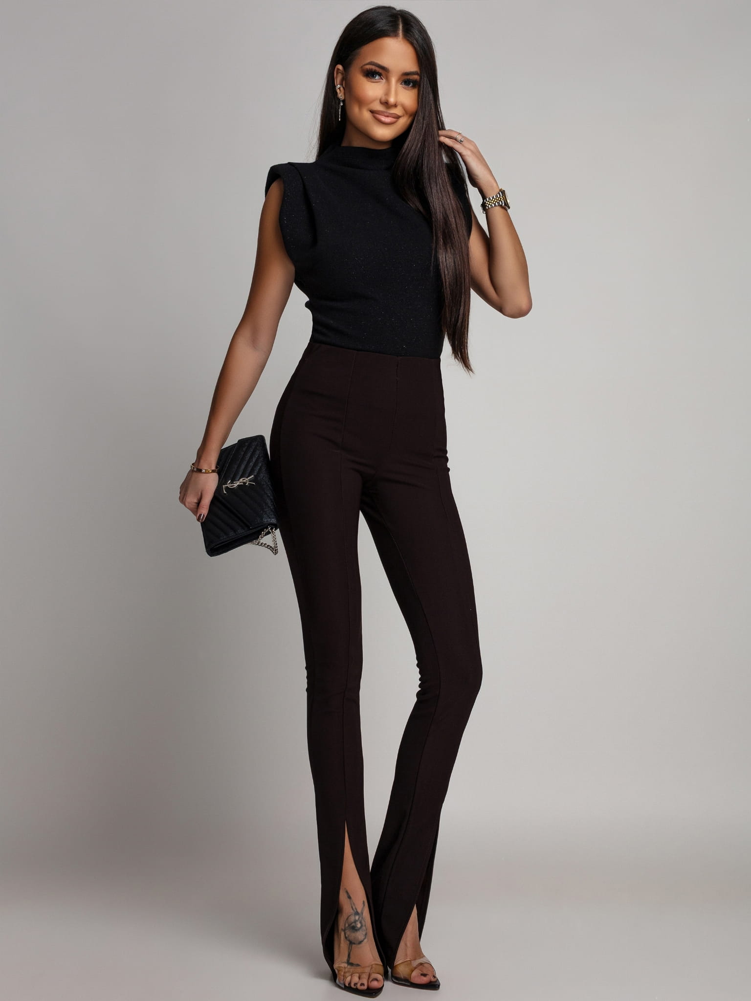 Legginsy Alice z rozcięciem czekoladowe