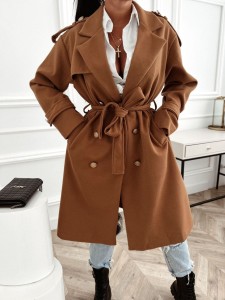 Płaszcz Milo dwurzędowy z paskiem carmel
