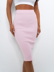 Spódnica Midi z prążkowanego materiału jasny róż
