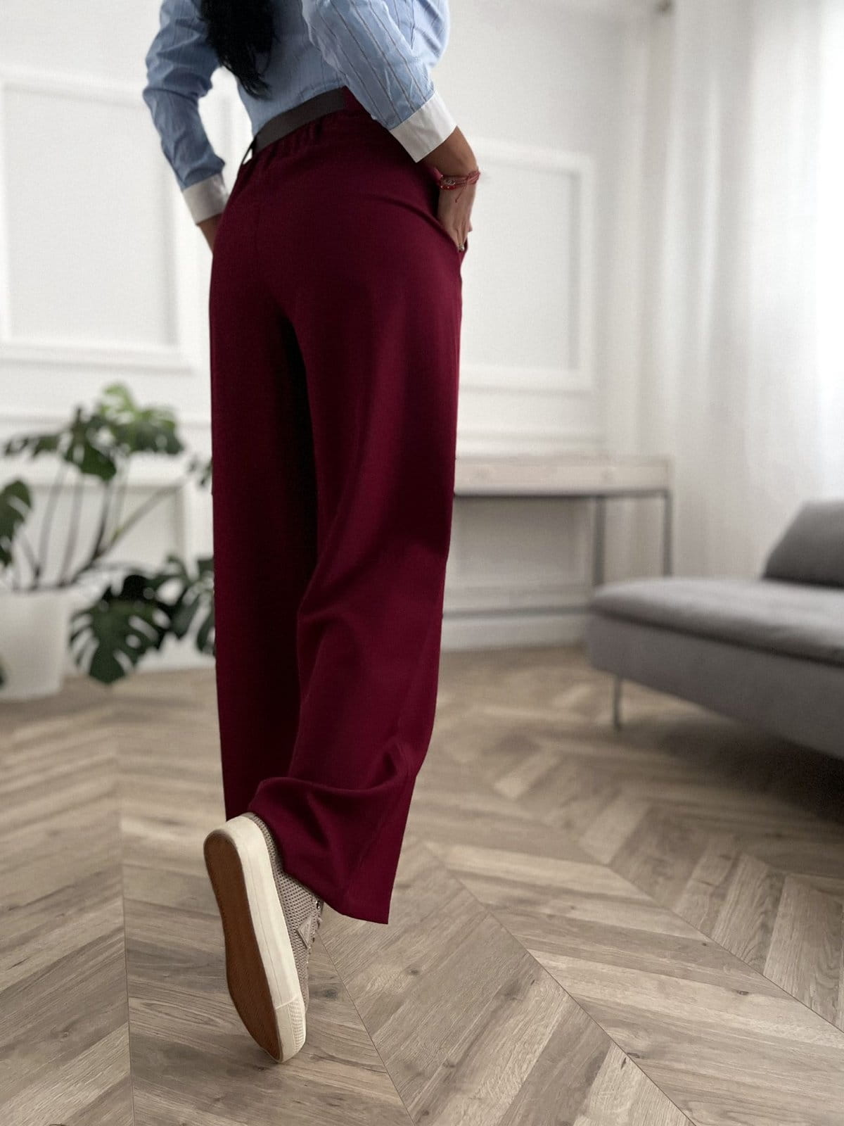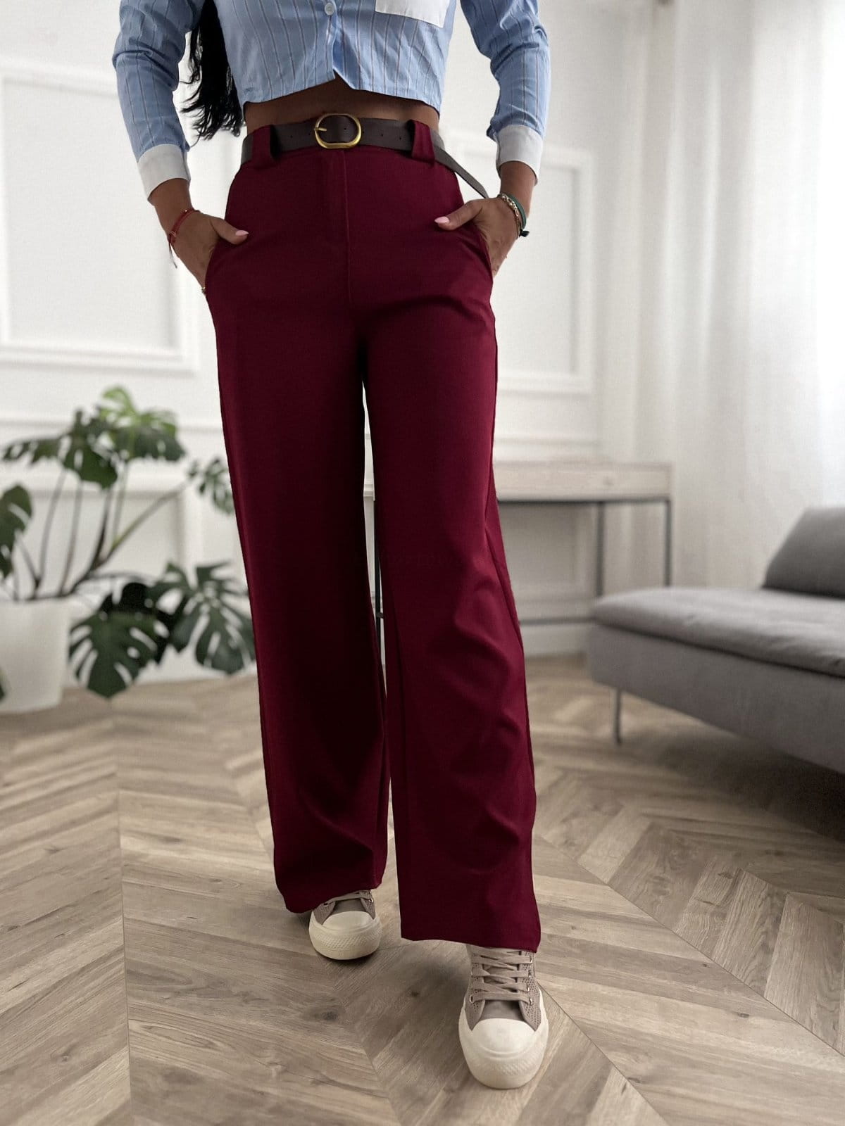 Klasyczny fason z prostą, rozszerzaną nogawką idealnie sprawdzi się zarówno w codziennych stylizacjach, jak i przy bardziej formalnych okazjach. Spodnie posiadają praktyczne kieszenie boczne oraz elastyczną gumkę w tylnej części pasa, która zapewnia komfort noszenia i dopasowanie do sylwetki. W zestawie dołączony jesty brązowy pasek widoczny na zdjęciu.