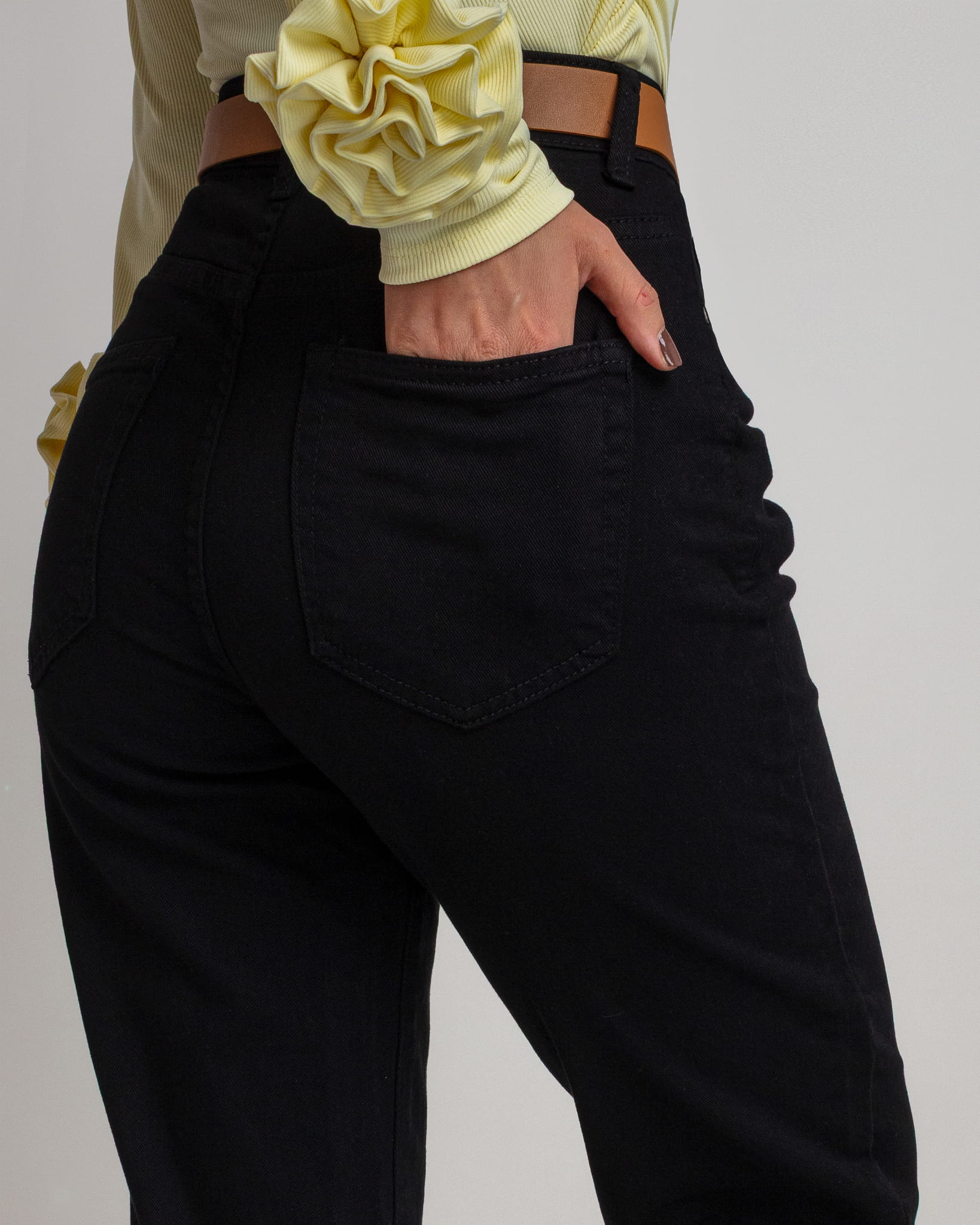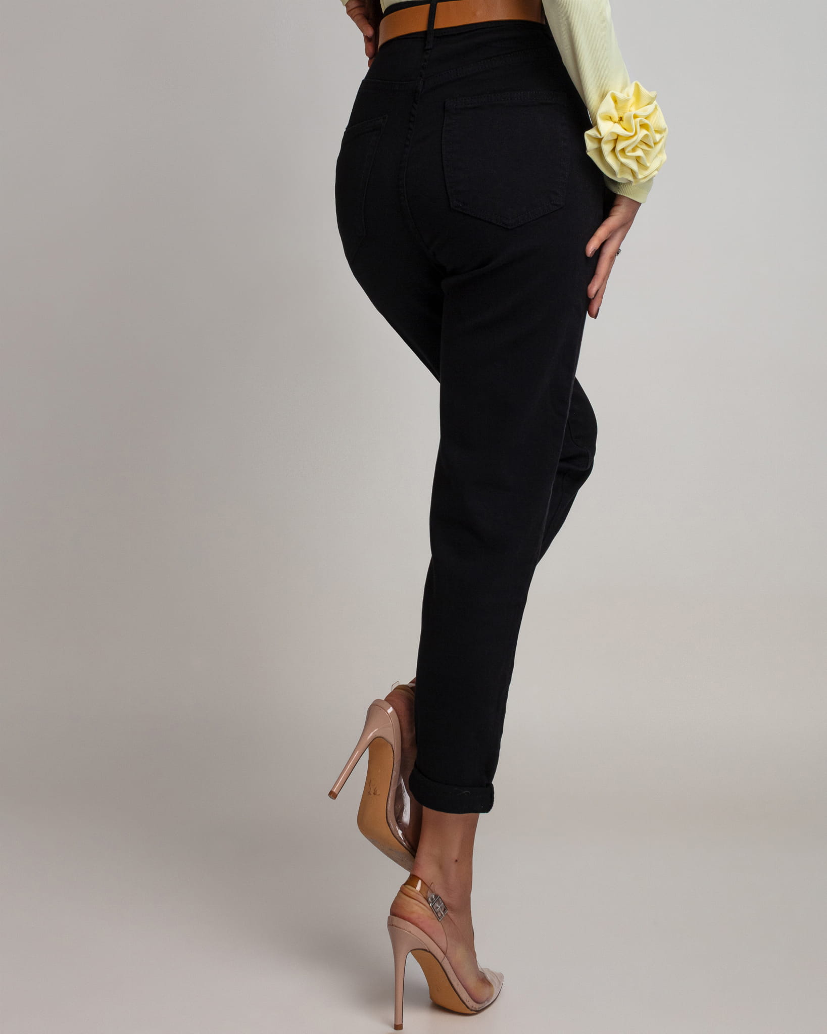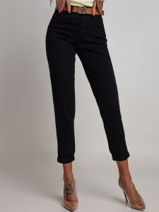 Spodnie jeansowe Dixi fit mom czarne z paskiem