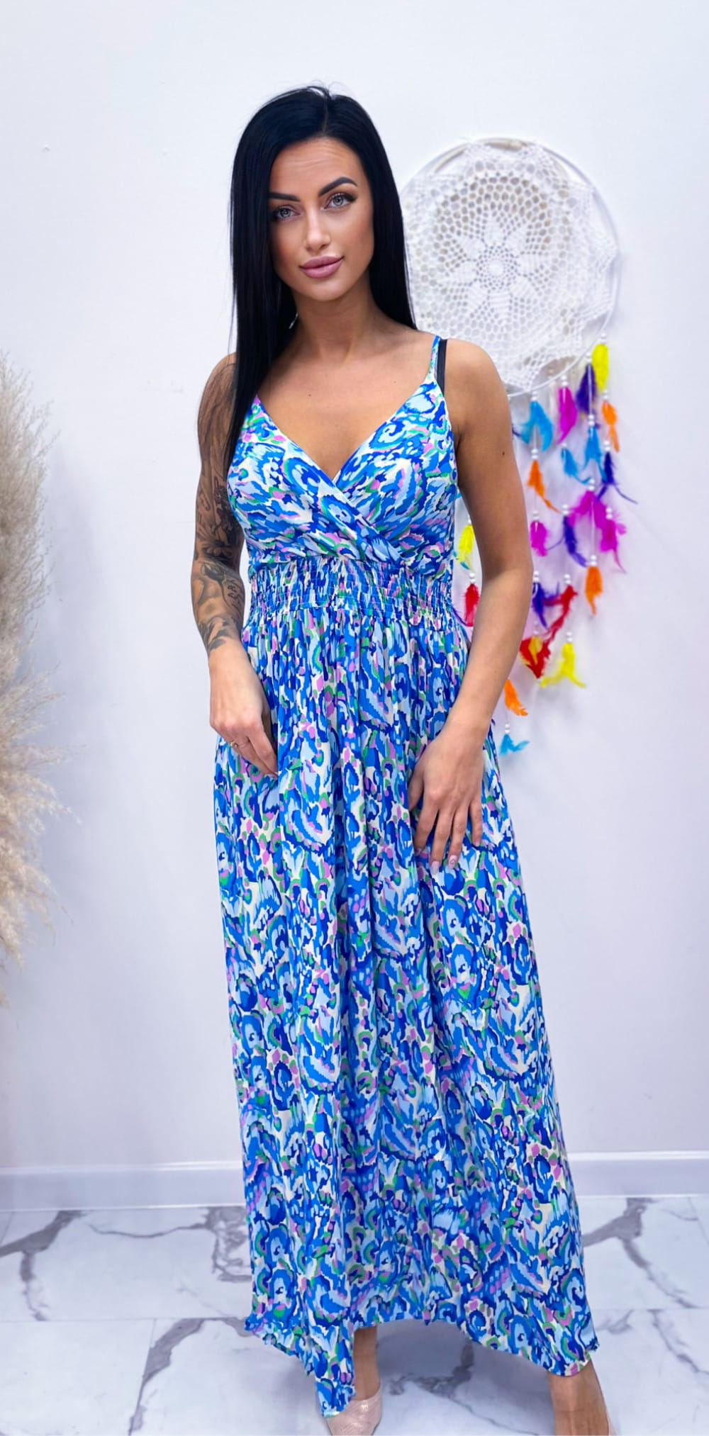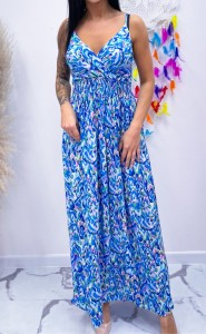 Sukienka Aquarell Maxi niebieska z kopertowym dekoltem