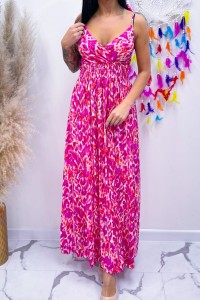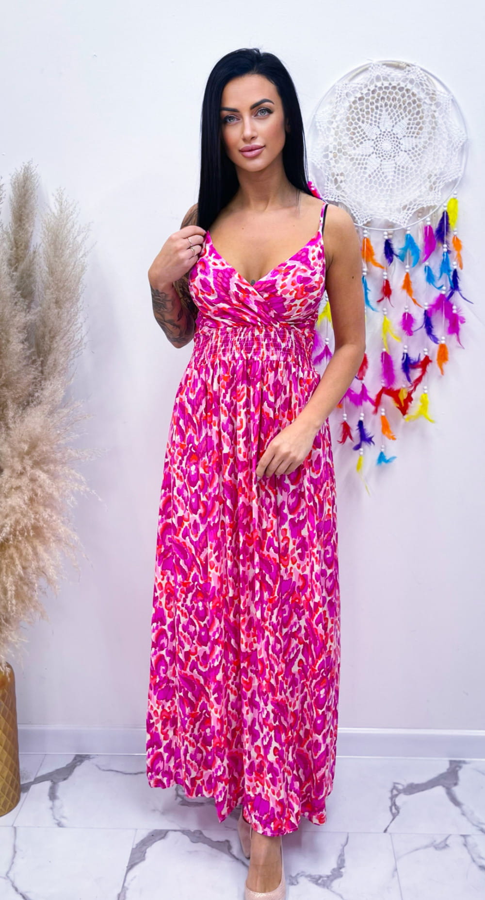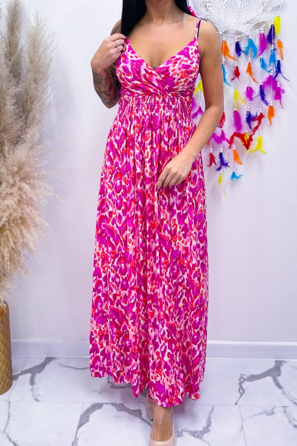 Sukienka Aquarell Maxi różowa z kopertowym dekoltem