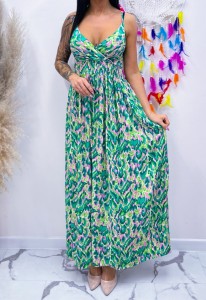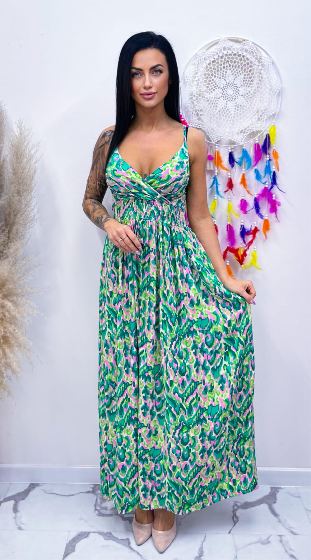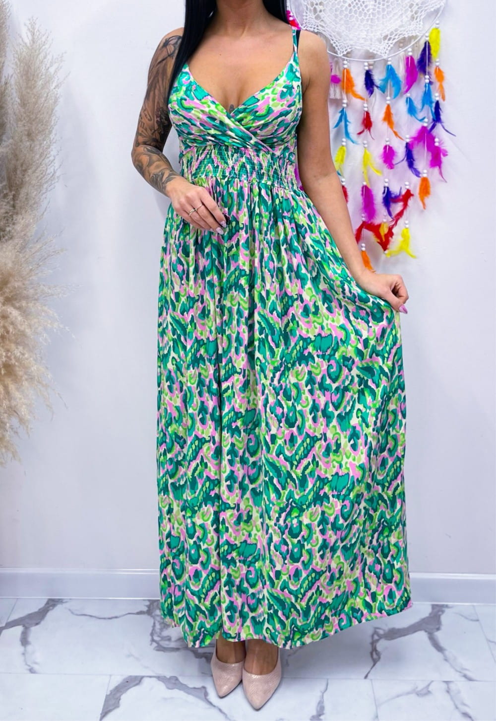Sukienka Aquarell Maxi zielona z kopertowym dekoltem