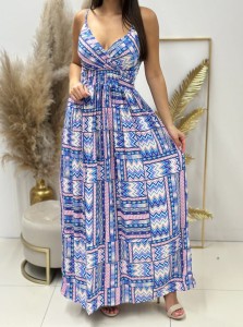 Sukienka ZigZag Maxi niebieska z kopertowym dekoltem