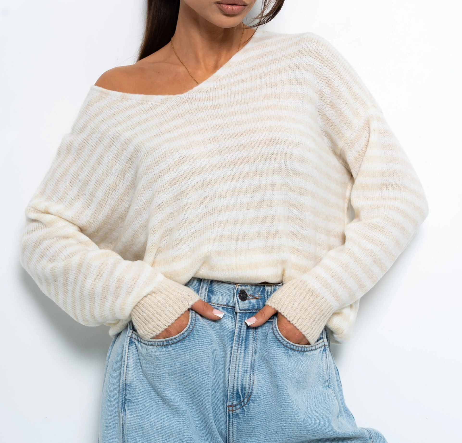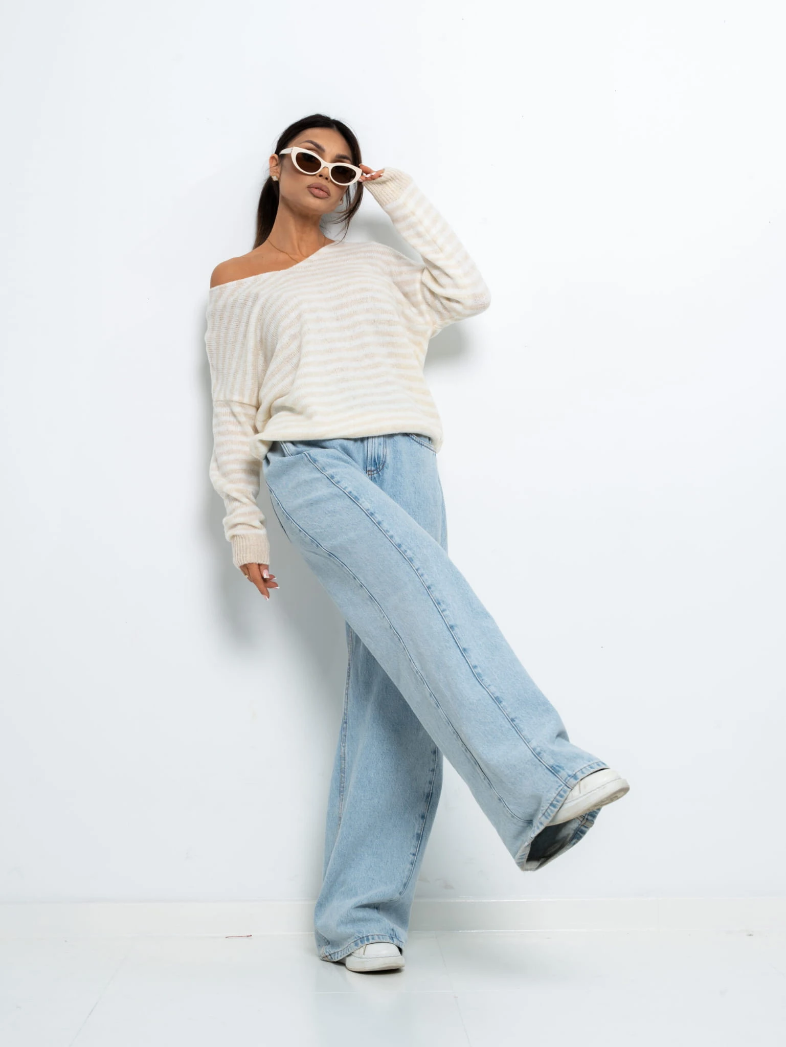 Sweter o luźnym kroju, wykonany z dobrej jakości materiału zapewnia komfort i swobodę noszenia.