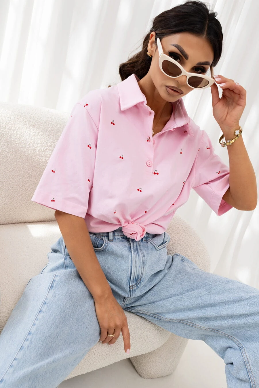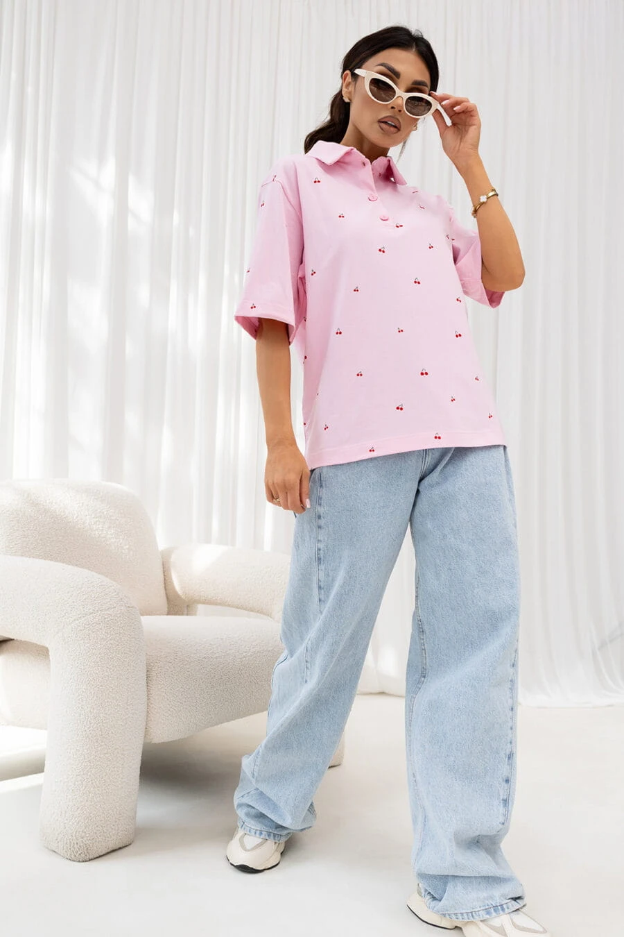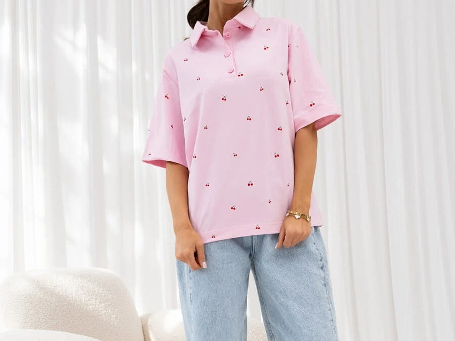 T-Shirt polo cherries różowy