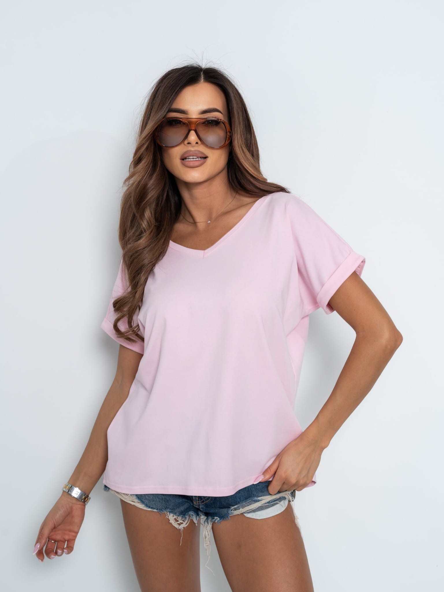 T-Shirt v-back różowy